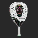Su estructura está fabricada en carbono con agregados de fibra, una combinación que mejora notablemente la salida de bola, aporta mayor estabilidad en el impacto y aumenta la durabilidad de la paleta, manteniendo una respuesta precisa incluso en golpes exigentes.